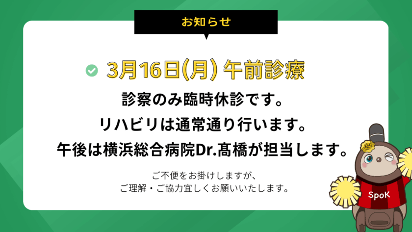 3月診療、臨時休診のお知らせ